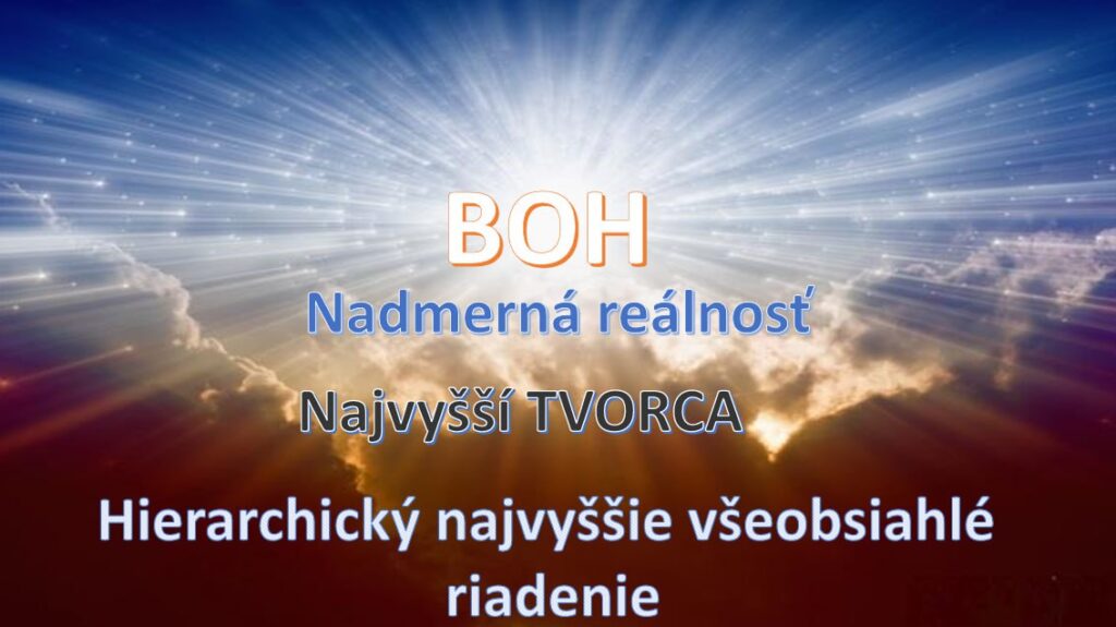 - Bůh – nad-realita, Všemohoucí, jediný pro všechny živé na Zemi Tvůrce a Všedržitel jím vytvořeného (tvárného) vesmíru. Nejvyšší všeobjímající úroveň řízení, která se ve vědomí většiny lidí odráží jako řetěz nahodilostí. ↩︎